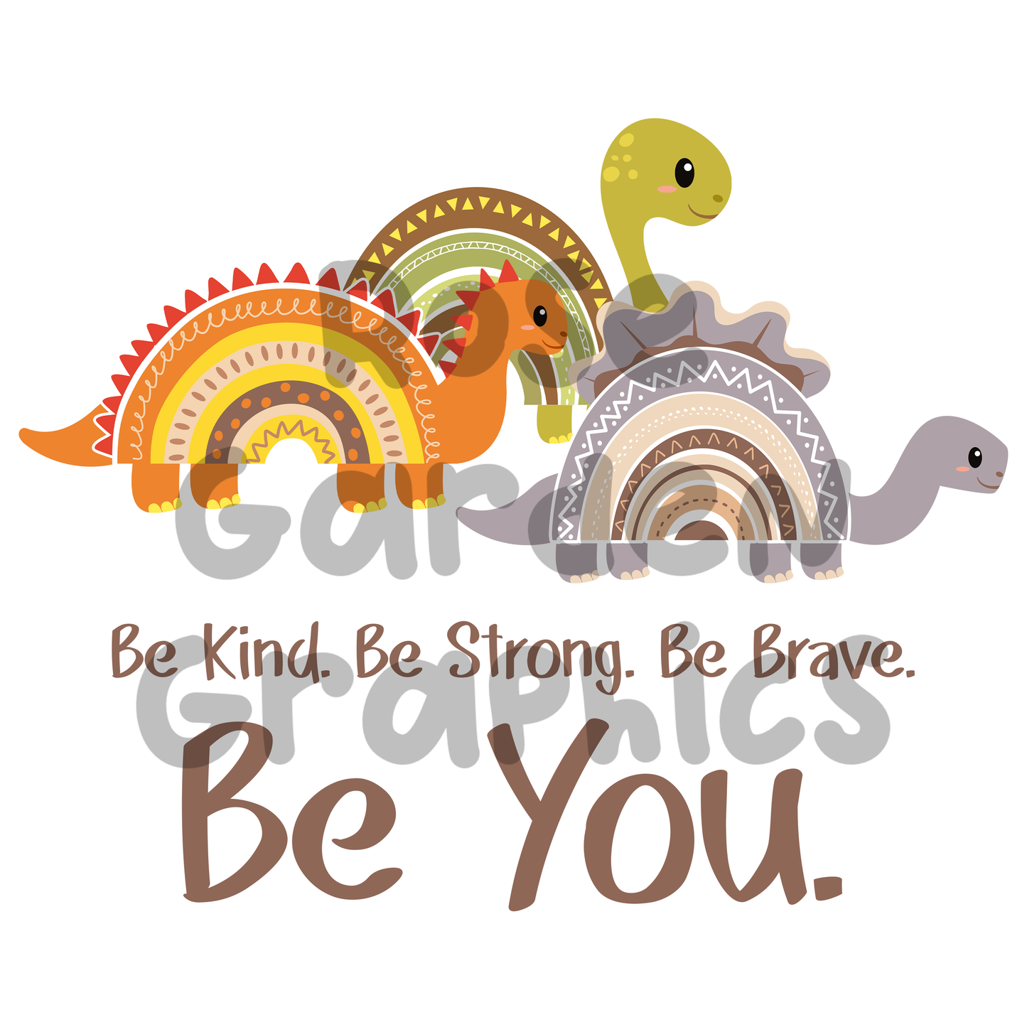 Dino Rainbows "Sé amable. Sé fuerte. Sé valiente. Sé tú". PNG