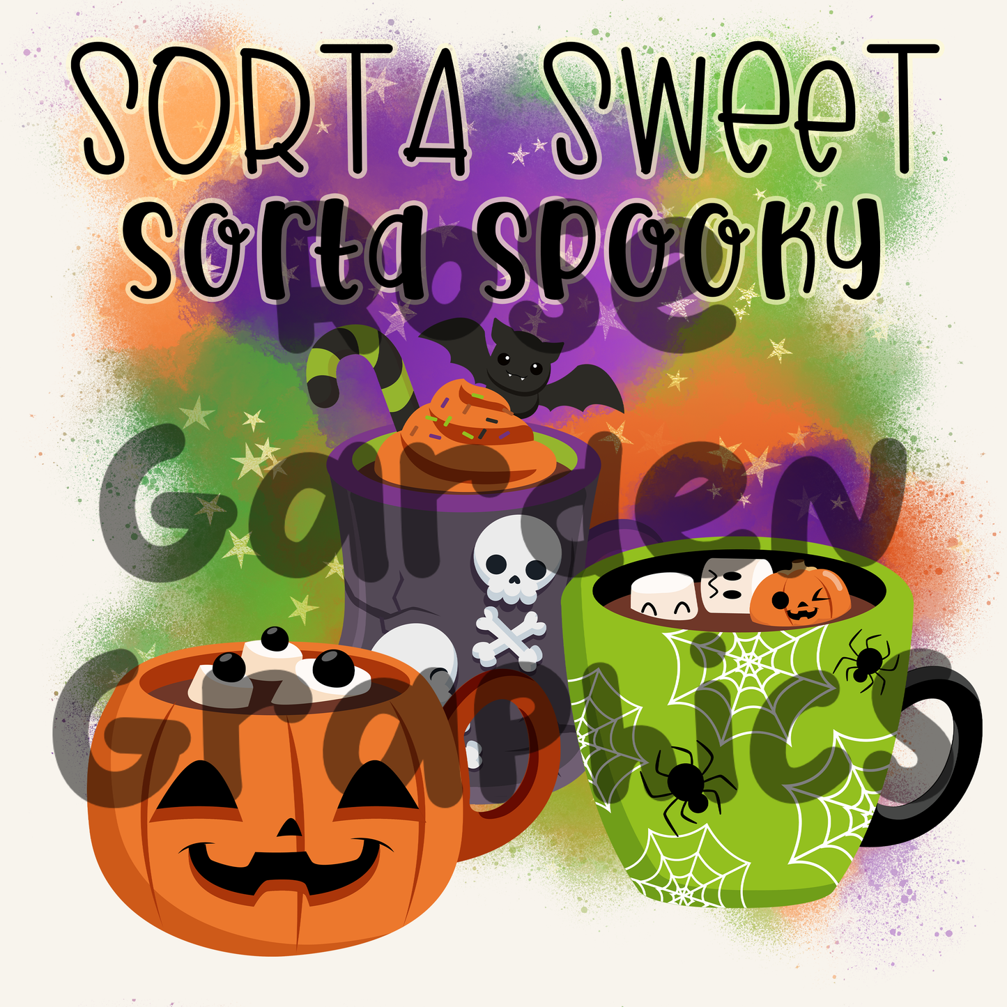 Tazas de Halloween "Más o menos dulce, más o menos espeluznante" PNG
