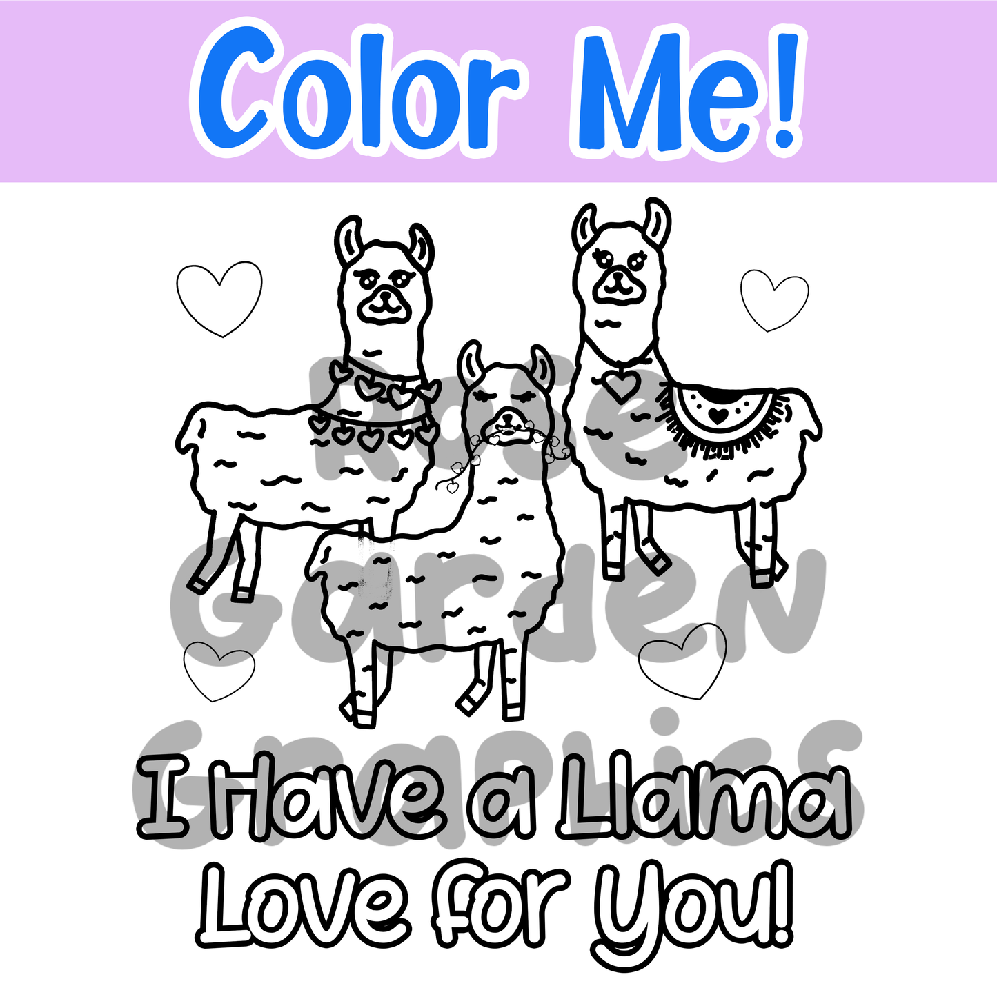 Llama Valentines 'Color Me' "Tengo una llama amor por ti" PNG