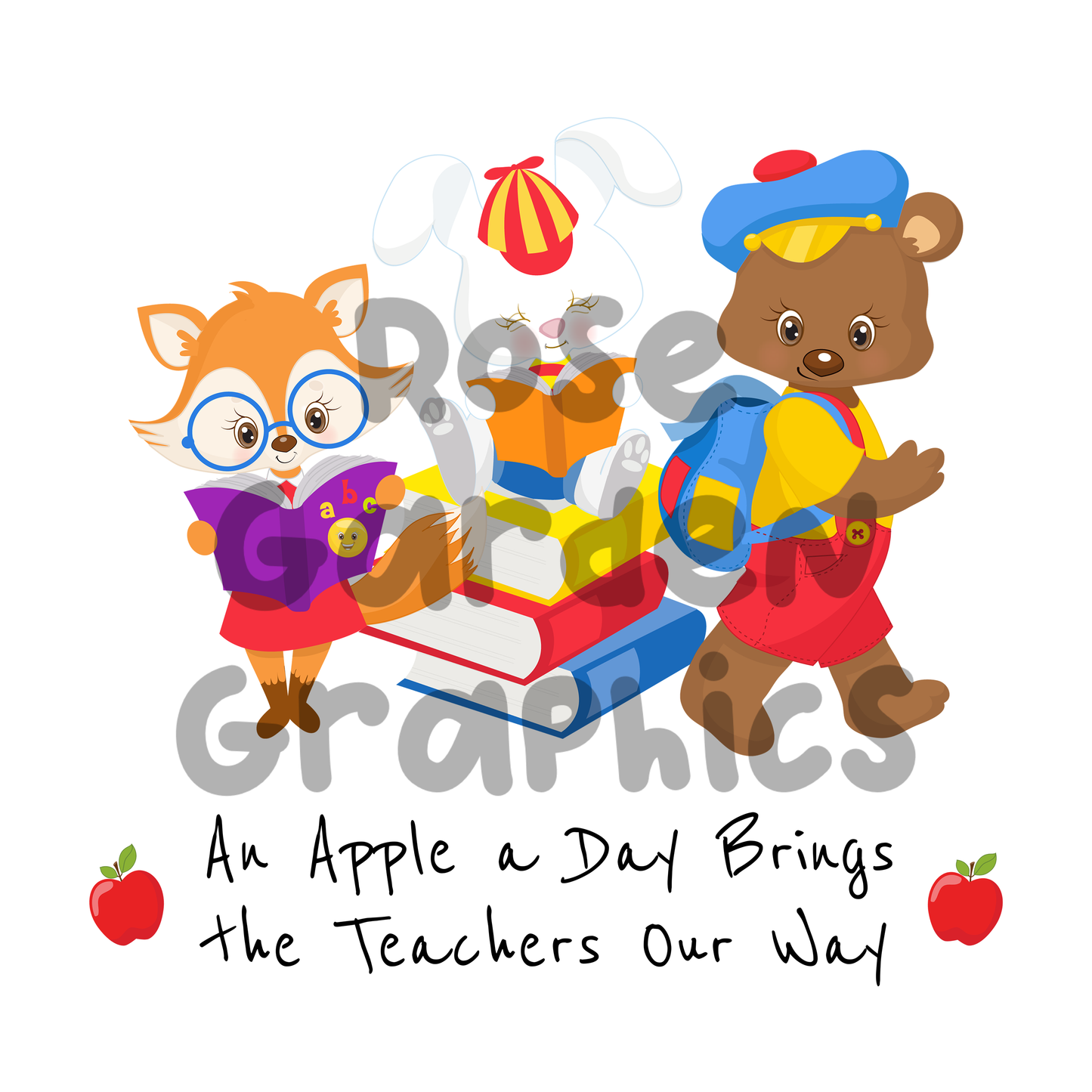 Back to School Woodland Animals "An Apple a Day Brings the Teacher Our Way" PNG