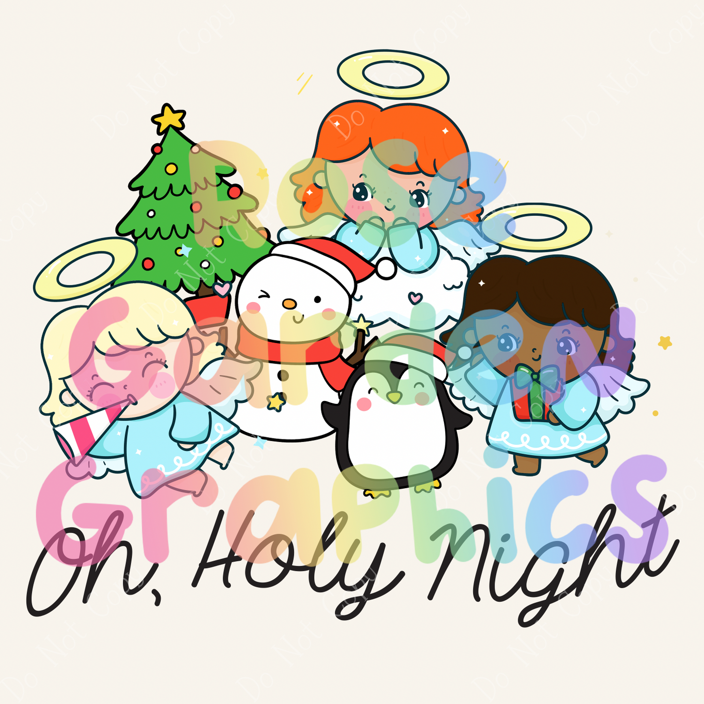 Cute Christmas Angels "Oh, Holy Night" PNG