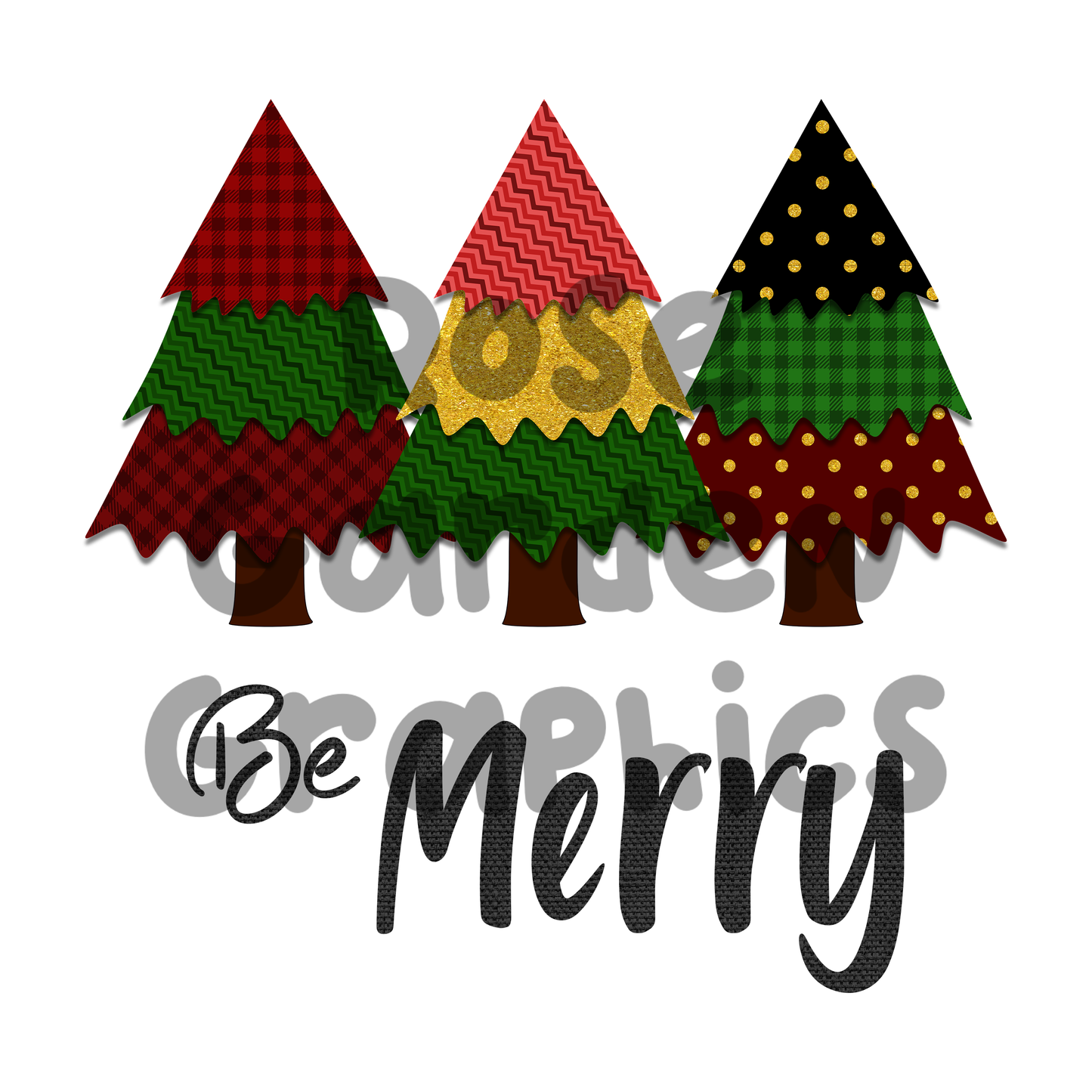Fabric Christmas Trees "Be Merry" PNG