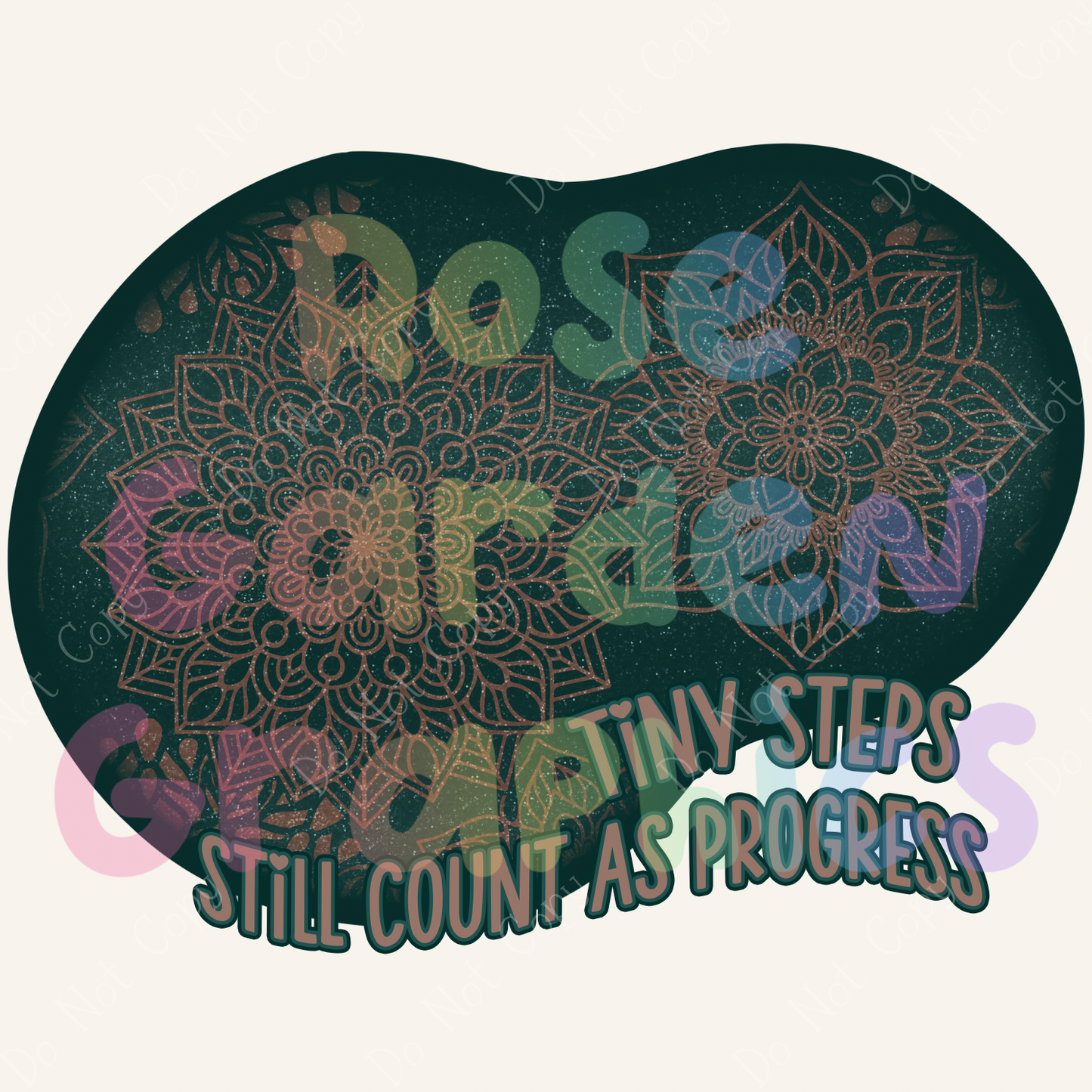 Glitter Mandalas (Teal & Bronze) "Tiny Steps Still Count As Progress" PNG