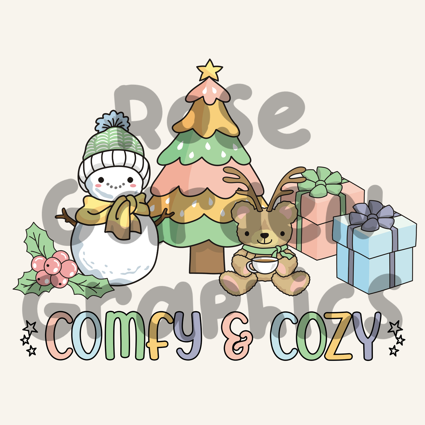 Pastel Doodle Christmas "Comfy and Cozy" PNG