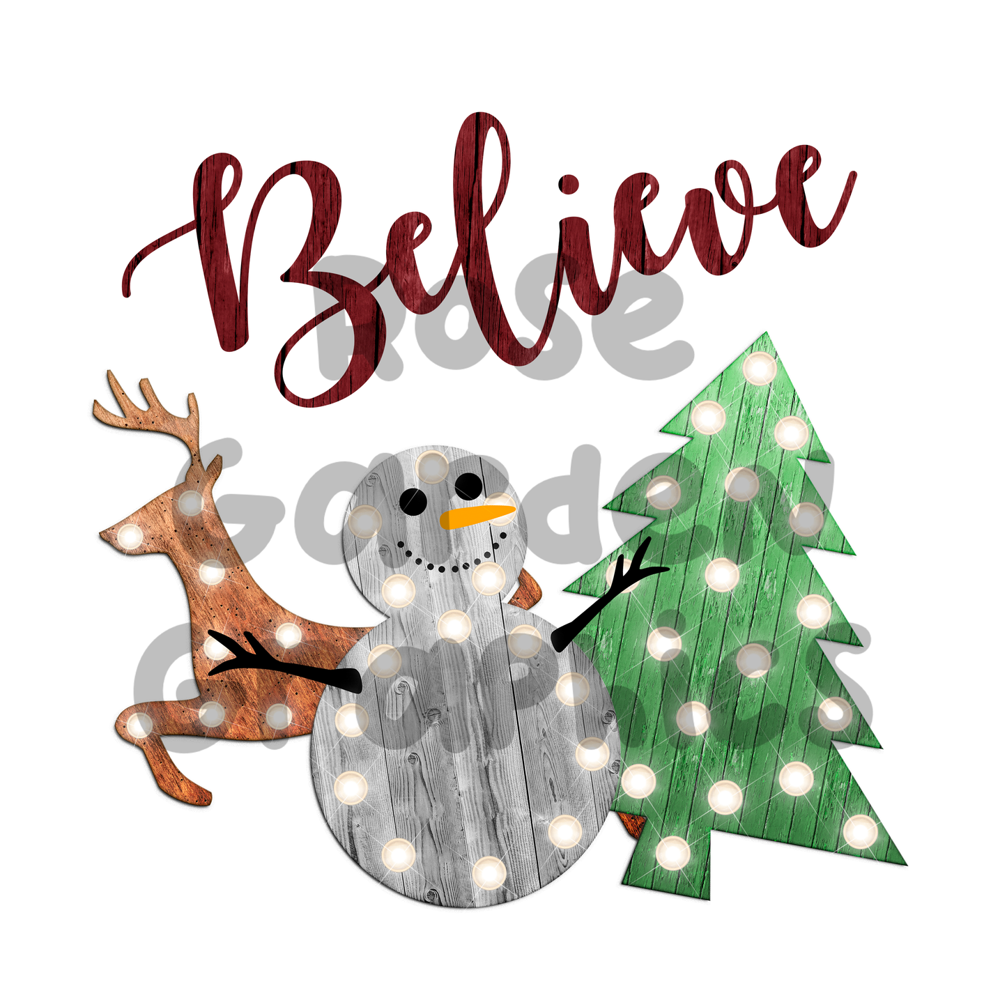 Rustic Wooden Christmas Lights "Believe" PNG