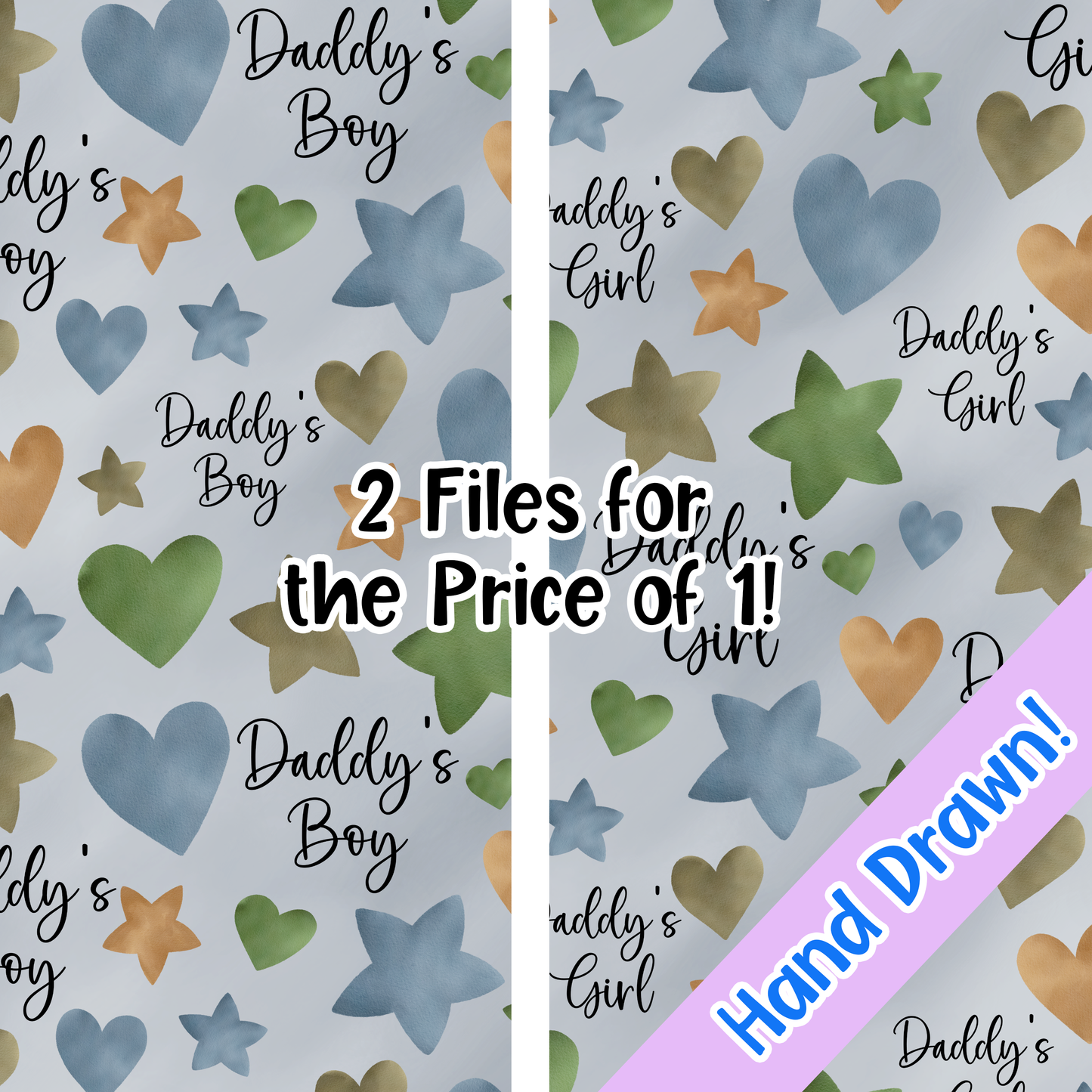 Sea Stars and Hearts "Daddy's Boy" & "Daddy's Girl" 2 Seamless Images