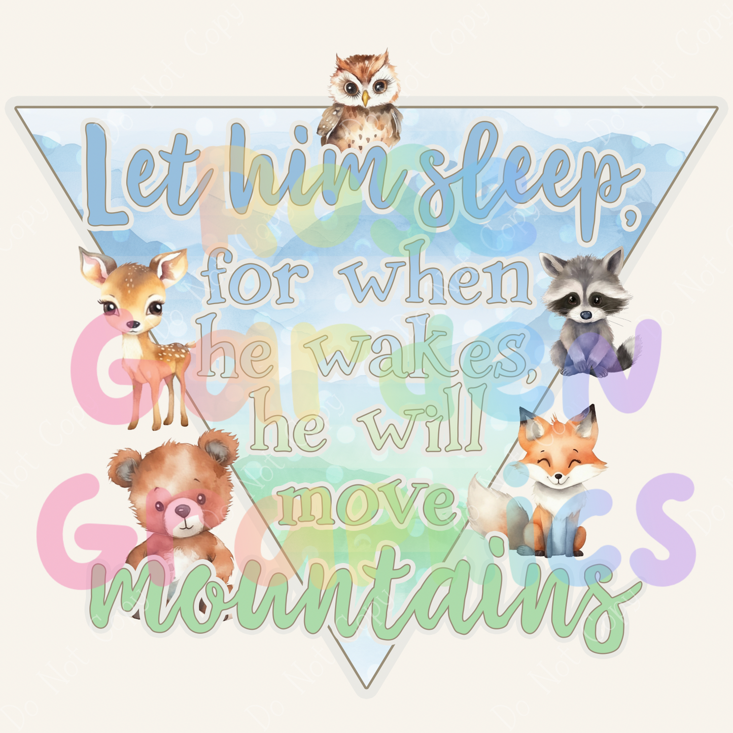 Woodland Mountains (Blue) "Let Him Sleep, For When He Wakes, He Will Move Mountains" PNG